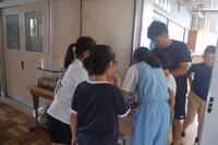 2年生算数「水のかさ」の授業の様子です。いろいろな形のますを使って、1リットルをはかってみました。形や大きさが違うのに1リットルの水の量が同じであることに子どもたちはびっくりしていました。