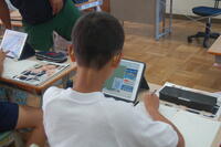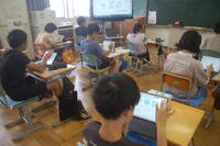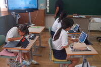 5年生家庭科「できるよ、家庭の仕事」の授業の様子です。これまでに学習してきた調理や製作、身の回りの整理・整とんなどを生かして、家庭で自分ができることを考えて実行しました。「家族のために朝ご飯を作った子」「洗濯をした子」「食器洗いをした子」など、自分が実践したことをタブレット型端末を活用してまとめることができました。