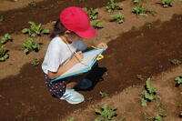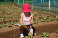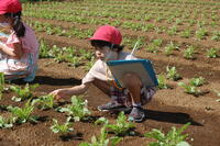 1年生生活科で坂っ子農園の畑に行き、大根の生長について観察してきました。観察カードに自分がまいた大根の種から芽が出てきたところの絵を描いたり、気がついたところを文で表したりしました。葉っぱの形がハートマークの葉と、ギザギザした葉があるなど、細かいところまで観察することができていました。観察カードをかき終わった子は、草取りも行いました。