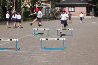 6年生体育「ハードル走」の授業の様子です。まずは、フォームではなく、リズムを意識して「跳ぶ」ことを行いました。ハードルの間隔が少しずつ違うので、自分がリズムよくハードルを跳ぶことができる間隔を何度も試しました。今後も歩数やリズムを考えて速く走る活動を行って行きます。めあてをもって、自分の記録が更新できるよう頑張っていきます。