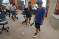 体育クラブは、運動場でサッカーをしました。まだまだ暑さが続いているので、熱中症対策をしながら活動しました。10分間試合をして、休憩(水分補給)しました。2セット行った後、1度教室に入って大きな休憩をしました。最後にもう一度運動場で先生も一緒に試合をして楽しみました。(熱中症指数も常に気にしながら活動しました)
