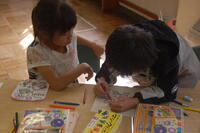 1年生国語「ぬりえゲームをしよう」の授業の様子です。言葉を聞き取ろうということで、くまさんのぬりえカードに先生が言ったことをよく聞いて、色ぬりをしていきました。ペアの友達と協力してしっかりと色ぬりすることができました。