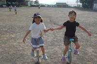 放課後、子どもたちが一輪車で遊んでいます。今、坂小学校では休み時間に子どもたちの中で一輪車が流行っています。中休みや昼休みなど一輪車を練習しています。毎日練習をしているので、どんどん上達していきます。今では、友達と手をつないで一緒に一輪車に乗っています。子どもたちの成長のすごさを感じます。