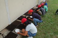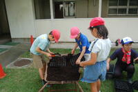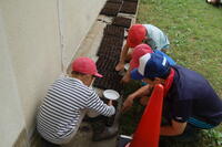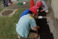 4年生が緑の少年団活動として、春花壇の準備を始めました。パンジー、ビオラ、クリサンセマムなどの種をまきました。種まき用のトレイに1粒ずつていねいに種をまいていきました。まだ暑い日が続いているので、最初は、日かげに置いておきます。かわいらしい芽が出てくるのが楽しみです。今後は、ハナナやネモフィラなどの種もまいていく予定です。