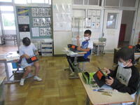 5年生理科の授業です。川の上流、中流、下流の石の様子を地図アプリで調べました。海から川を上っていき、それぞれの流域の様子の違いを見比べることができました。