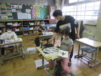 5年生の出前授業です。トヨタ自動車東日本の方に来ていただき、自動車製造について話を聞いたり体験したりしました。まずは、自動車の製造するためにどのようなことをしているのか聞き、その後、自動車部品を設置していく模擬体験をしました。終始、高い関心を持って授業に取り組んでいました。