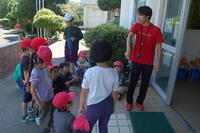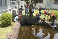 1年生が4時間目に生き物探しをしました。坂っ子広場や池の周りを中心に探しました。「アリを見つけたよ」「だんごむしもいたよ」「カエルを捕まえたよ」などたくさんの生き物にふれることを楽しんでいました。もちろん、苦手な子もいるので、その子は友達が捕まえる様子を見ていました。途中で4年生と一緒になって、大きなカエルを見つけて興奮していました。