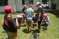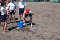 5年生が運動会の学年対抗種目の練習を行いました。昨年同様「水くみリレー」です。今年は昨年度と少しルールを変更しました。まずは、今年度のルールで「やってみよう」ということで水くみリレーを行いました。昨年度よりも少しレベルアップした内容であったので、なかなか上手に水を入れることができません。これからどんな作戦を立てるのかが楽しみです。