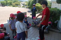 2年生も運動会学年種目練習を行いました。2年生もまずは「やってみよう」ということで取り組んでみました。やはり5年生と同じようになかなかうまくいきません。一度みんなで集まって、担任の先生を中心に「どうすればうまくいくのか」について話し合いました。たくさんの意見が出ました。最後に出た意見を実際に試してみました。2年生もこれから練習をして速くなるのが楽しみです。