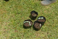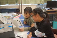 4年生がヘチマの種を植えてから芽が出始めて、大きくなってきました。自分が蒔いた種から芽が出ているのをうれしそうにタブレットに写真を撮って記録していました。黒ポットに2つ出てきた芽があるので、1つをプランターに移植している子もいました。