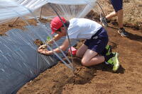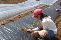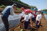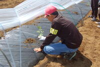 野菜大臣の4年生と最高学年の6年生は、トウモロコシの種まきの後に、すいかの苗植えも行いました。すいかの苗の植え方の説明を聞いた後、苗が傷つかないように、丁寧に植えました。手際よく作業が進み、3時間目の時間内に終了することができました。これから夏に向けて、とうもろこしとすいかが大きくなるのが楽しみです。