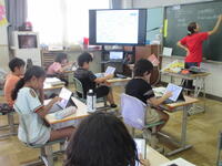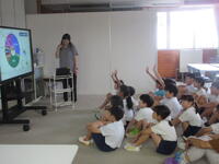 6年生が1年生の教室へ行き、交通ルールを守ることについて話をしました。自分たちで作成したスライドや動画を使ってわかりやすく説明をしました。説明が伝わったか確かめるために問題を出し、1年生はしっかり答えることができました。夏休みも交通安全に気をつけて生活できます!
