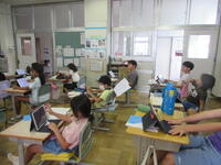 1年生へのタブレット指導です。文字入力のやり方や写真の動かし方について学習しました。先生のやり方を見て、アドバイスを聞き、上手にできました。さすがです!