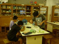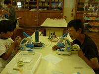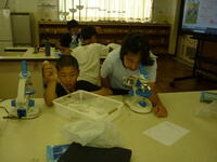 6年生理科「生物のくらしと環境」で、水の中の小さな生物を調べました。学校の池にはどんな小さな生物がいるのか興味津々の6年生。1人1台ずつ顕微鏡を使って探し、「見つけた!」と仲間同士見せ合っていました。