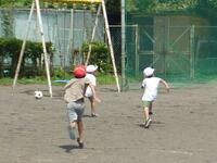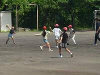中休みの様子です。猛暑が一休みし、初夏の青空の下、子供たちはサッカーやドッジボール、鬼ごっこなど、全力で体を動かしていました。休み時間が終わり、教室に戻る子供たちは清々しい顔をしていました。