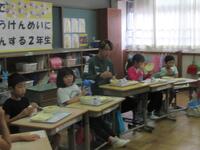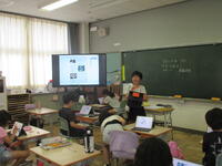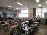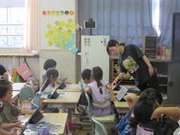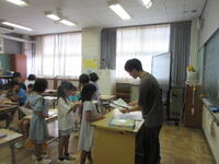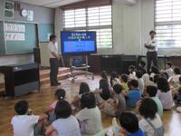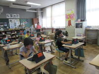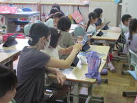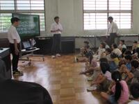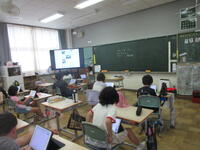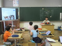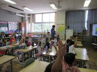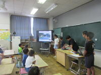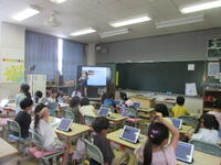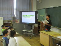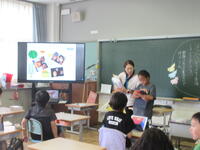 6年生が1年生の教室へ行き、交通ルールを守ることについて話をしました。自分たちで作成したスライドや動画を使ってわかりやすく説明をしました。説明が伝わったか確かめるために問題を出し、1年生はしっかり答えることができました。夏休みも交通安全に気をつけて生活できます!