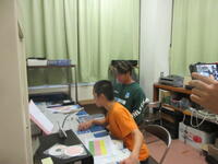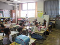 夏休みの宿題を先生が集める時も、「この絵を描いたよ。」、「習字はここがうまくできたよ。」と友達と楽しく話をしていました。また、夏休みの思い出をみんなに伝える時も、笑顔で自分の体験を伝えていました。聞いている子供たちも自然と笑顔になっていました。