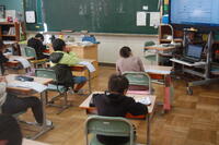 2年生国語の授業の様子です。新出漢字の練習をしました。どんどんと新しい漢字を覚えています。音読みや訓読みの読み方を確認した後、書き順も覚えます。みんなで手を挙げて書き順も書きます。その後、漢字ドリルやノートに書いて練習しました。