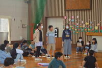 2時間目に代表委員会が中心となり、「1年生を迎える会」が行われました。まずは、4,5年生がアーチをもち、たくさんの拍手の中、1年生が入場しました。1年生は前に座っているので、ちょっと緊張している様子でした。次に6年生による坂小のよいところ紹介をしました。「農事体験」「自然が多いところ」「坂っ子山」「運動会」などの写真を電子黒板に映して、1年生に説明しました。さすが、坂小リーダーの6年生、一人一人が役割をしっかり行いました。