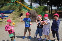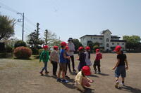 1年生が坂小学校の学校探検をしました。各学年のある教室棟から特別教室のある校舎、最後は運動場に出て、坂っ子山に行きました。運動場では、天気もよく気もちよかったです。1年生の多くがきれいなお花をたくさん拾っていました。