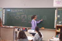 5年生算数「図形の面積」の学習の様子です。「学習をしたことを使って、台形の面積は求められるだろうか」という課題で台形の面積の求め方について考えました。子どもたちは、台形を平行四辺形や三角形にして面積を求めたり、三角形と長方形分けて面積を求めたりといろいろな求め方の方法を発表しました。