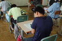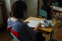 6年生の家庭科の授業の様子です。「どのように生活時間を使っているのだろうか」ということで、自分の一日の生活時間について、起きる時間、学校で過ごしている時間、家での時間、寝た時間など表にまとめました。平日と休日の2パターンを考えました。その後、学習の時間を赤、自由時間を青、寝ている時間を黄と色分けして、気がついたところ書きました。「自由時間が多いな」「寝る時間が少ないな(遅いな)」「学校のある日と休日では生活時間が全然違うな」など自分の生活について見直すよい時間となりました。