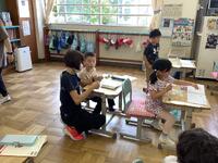 1年生の算数「いくつあるかな」の様子です。仲間分けして整理し数える「算数的活動」を、具体物を操作しながら熱心に取り組んでいました。このような「算数的活動」を通して、数の概念を深く理解していきます。担任は、いつも一人一人に寄り添いながら支援しています。