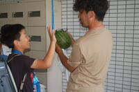 4年生と5年生がスイカを持ち帰りました。今日のスイカは12個収穫できたので、4年生全員と5年生の4人が持って帰ることができました。これで残りは、5年生の10人と6年生となりました。今後の予定では木曜日と金曜日に収穫できることになりそうです。夏休み前に全員が持って帰ることができるといいなと思います。