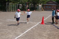 3・4年生体育の授業の様子です。運動会に向けてリレーの主にバトンパスの練習を行いました。バトンパスを行う上で、「渡す人」「もらう人」のポイントを押さえた後、チームで練習しました。バトンをもらうときの手の位置、前を向いてもらうこと、バトンゾーンを有効活用しているかなど、タブレット型端末を使い、自分のバトンパス動画をとって、その動画を見てポイントができているのかを確認しました。バトンをもらう人、渡す人で話し合っている場面も見られました。