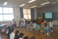 6年生が交通安全リーダーとして、自分たちの住んでいる地域の交通安全について調べたことを1年生に伝える会を行いました。交通ルールの説明をしたり、危険な場所について伝えたりしました。1年生にも分かりやすく説明を丁寧にしている姿は、さすが交通安全リーダーだと感じるものがありました。1年生も6年生の説明を真剣にしっかりと聞くことができました。