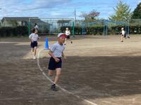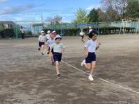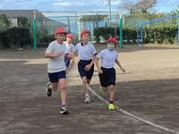 3,4年生体育の授業です。持久走が始まりました。4分間にどれだけの距離を走れるかチャレンジしました。自分のペースをつくることに苦労し、苦しくなっていましたが、それに負けず走り切ることができました。心も体も鍛えていきます。