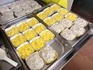 今日は手作りドリアの給食です。ターメリックライスの上にグラタン、チーズをのせて作ります。