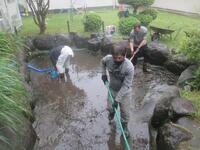 池の掃除では、池の水を全部ぬいて、落ち葉や泥をとっていただきました。きれいにした後、新しい水を入れました。きれいになった池に新たな生き物が誕生してくれることを楽しみにしています。