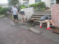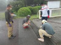 ほかに外では、側溝の土砂処理、雑草の伐採等を行いました。特に側溝の掃除は、普段なかなか行うことができません。側溝の蓋を外し、中の土砂や落ち葉をスコップで取り除いてもらいました。力仕事となりましたが、側溝を速攻できれいにしてくれました。