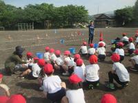 運動会では、縦割りのなかよし班で、3年生から6年生までのリレー種目があります。その練習が行われました。最初に班ごとに分かれて、走る順番を決めました。その後、実際にリレーを行いました。スタートは4年生、その後3年生→4年生→5年生→6年生とバトンをつないでいきます。5時間目の暑い中でしたが、チームのためにどの子も一生懸命走っている姿はとてもかっこよかったです。