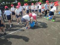 2回目の学年対抗種目の練習が行われました。前回の反省を生かして、距離の長さ水の量のを変更しました。そのため、1回目に行ったときと順番が大きく変わっていました。練習した成果を発揮し、どの学年も動きが速くなってきました。この競技は、「学級」を意識したものです。学年対抗とすることで、学級の一体感を味わわせられるようにしたいと考えました。