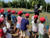2時間目3・4・5年生が、坂っ子農園に行きました。9月13日(火)にまいたダイコンの種から発芽し、約3週間ですごく大きく育っていました。一人分は、1カ所に3粒ずつ、10カ所に種をまいていましたが、これから大きく育てるために、今日は「間引き」をしました。地域学校協働本部の方から、「間引き」のやり方を教えてもらってから、行いました。
