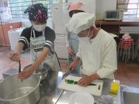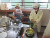 5年生家庭科の授業では、調理実習を行いました。ほうれん草を使った青菜のおひたしを作りました。沸騰したお湯で野菜をゆでることや包丁を使うのが初めての経験でした。子どもたちは、グループの友だちと協力しながら手順良く行うことができました。