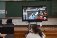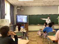 3時間目には、場所を音楽室に移動し、トヨタ自動車の東富士研究所とzoomでつないで実際に研究所の方とお話をすることができました。普段は絶対に見ること、入ることができない研究所の中の様子を見ることができたのは、子どもたちにとってとても貴重なことでした。