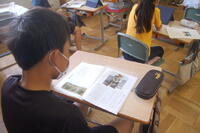 5年生は、「わり算」の筆算の方法について、一人一人がまとめていました。習得したことを活用して自分の言葉でまとめる取組は、学習内容の定着を図るために有効です。子供たちは、熱心に取り組んでいました。そして、自分でまとめた内容をタブレット型端末で撮影し、Meta Mojiにアップロードしていました。それをクラス内で共有することで協働的な学びとなりました。友達がまとめたものと自分のものを比較したり、友達のまとめの「よさ」を取り入れたりすることで、さらに学習の定着を図ることができるとともに、次の学習や取組に生かすことができます。