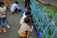 1年生が先週の木曜日にまいたアサガオの芽が出てきました。種をまいて数日しかたっていないのにすぐに芽が出てきてびっくりしました。1年生は、「アサガオの芽が3個出てる」「僕のは5個出てるよ」「こんな端から芽が出てる」などたくさん芽が出ていることに喜んでいました。