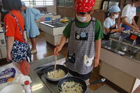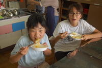 今回の文化クラブでは、坂小学校で収穫したじゃがいもを使って料理を作りました。子どもたちはそれぞれ自分が作りたいじゃがいも料理に挑戦しました。フライドポテトを作る子、ポテトチップスを作る子、いももちを作る子などに分かれていました。特にいももちの人気が高く、以前に給食でさかじゃがを使ったいももちがおいしかったからだそうです。今回は、なかにチーズを入れて、いももチーズにしていました。溶けたチーズがのびて、すごくおいしそうでした。