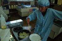 5年生が家庭科の時間にさかじゃがを使って、坂コロッケを作りました。作り方などは事前に調べ学習を行い、イメージトレーニングはバッチリでした。最初にジャガイモを切ってゆでました。