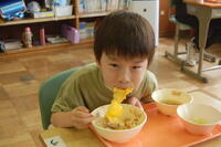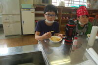 給食試食会が行われました。お家の人は、久しぶりの学校給食かもしれませんね。この日の献立は、ドライカラー、じゃがいものちゅうかサラダ、くだもの(すいか)、牛乳です。本日の給食には、さかじゃがを使ったちゅうかサラダと坂小農園度今年度初めて収穫したすいかを使いました。最初に栄養士より、給食について、栄養バランスのこと、いろいろな食材を使っていること(地産地消)、衛生管理を徹底して行っていることなどの話がありました。また、1年生の給食の様子を見ていただきました。給食当番をしっかりやっているところやおいしそうに給食を食べている様子も見ていただきました。その後、お家の方にも給食を召し上がっていただきました。お家の方に「ごちそうさま、すごくおいしかったです。」と言っていただき、とてもうれしく思いました。