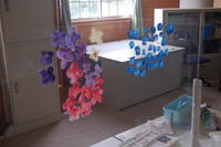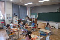 1年生は図画工作科で「はらぺこあおむしをつくろう」を行いました。はさみを使って、丸く切る練習をしながらあおむしを作っていきました。広告のチラシを使ったアイデアはとても良かったです。2年生は国語で「たこのすみ いかのすみ」の学習をしていました。3年生は理科で「風やゴムで動かそう」を行っていました。自分でゴムで動く車を使ってゴムのはたらきについて学習しました。