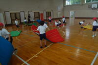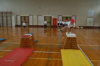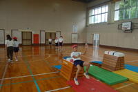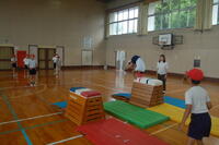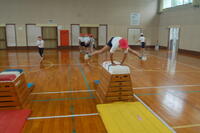 3・4年生の体育「跳び箱運動」の授業の様子です。前回、開脚跳びの練習をしました。今回の授業でも、最初に開脚跳びの復習をしました。前回よりも空中での姿勢と着地を意識して跳びました。何回か跳ぶごとに着地がしっかりとできるようになってきました。次に台上前転を練習しました。まずは、マットの上で前転を何回か練習しました。その後、まずは跳び箱の1段から始めました。3年生は初めてだったので怖さがありましたが、補助をつけて行うことで少しずつ上手になってきました。4年生は、昨年度やっていたので、さすがとても上手に前転をすることができていました。