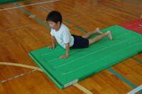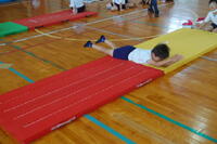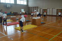 3・4年生が体育で新体力テストの「反復横跳び」「上体起こし」「長座体前屈」などの練習をしました。3年生は初めての新体力テストです。1つ1つ種目のやり方の説明をしっかり聞いてやりました。反復横跳びでは、リズムがなかなか難しいですが、テンポ良くできていました。上体起こしでは、腹筋を使って一生懸命体を起こしていました。次は、外での種目、50メートル走やソフトボール投げを練習します。