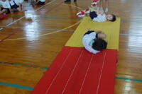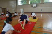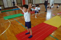 1・2年生の体育「マット運動」の授業の様子です。準備運動をしっかり行ってから、グループごとに行いました。最初にからだをピンと伸ばして横転がりをしました。ブリッジやゆりかごなども行いました。最後に前転もやって、前回よりもきれいに回ることができていました。次は、後転にも挑戦していきたいと思います。最後はみんなで協力してマットを片付けることができました。