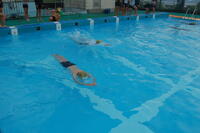 1・2年生が今年初めてのプールの授業を行いました。1年生は小学校生活初めてのプールの授業です。今週は、プールの水も低水位で行います。プールの入り方などのルールの確認をしました。お天気も良くなり、水温もちょうど良かったのか、とても気もちよさそうに入っていました。プールの中を歩いたり、ワニさんをやったりしました。最後にボール拾いを楽しみました。