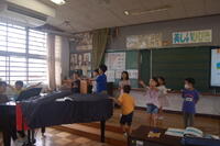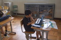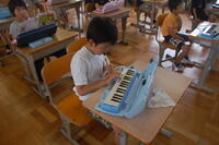 2年生の音楽の授業の様子です。最初に明るい声での「にんげんっていいな」をみんなで歌いました。2曲目に「パプリカ」を歌いました。「パプリカ」では、子どもたちは振り付けをつけて踊りながらとても楽しそうに歌っていました。次に鍵盤ハーモニカをやりました。「かえるのがっしょう」と「かっこう」を演奏しました。音階でかえるのがっしょうを歌った後に、実際に鍵盤ハーモニカで演奏しました。どの子も上手に演奏することができるようになってきました。最後にみんなで貨物列車をやって楽しみました。